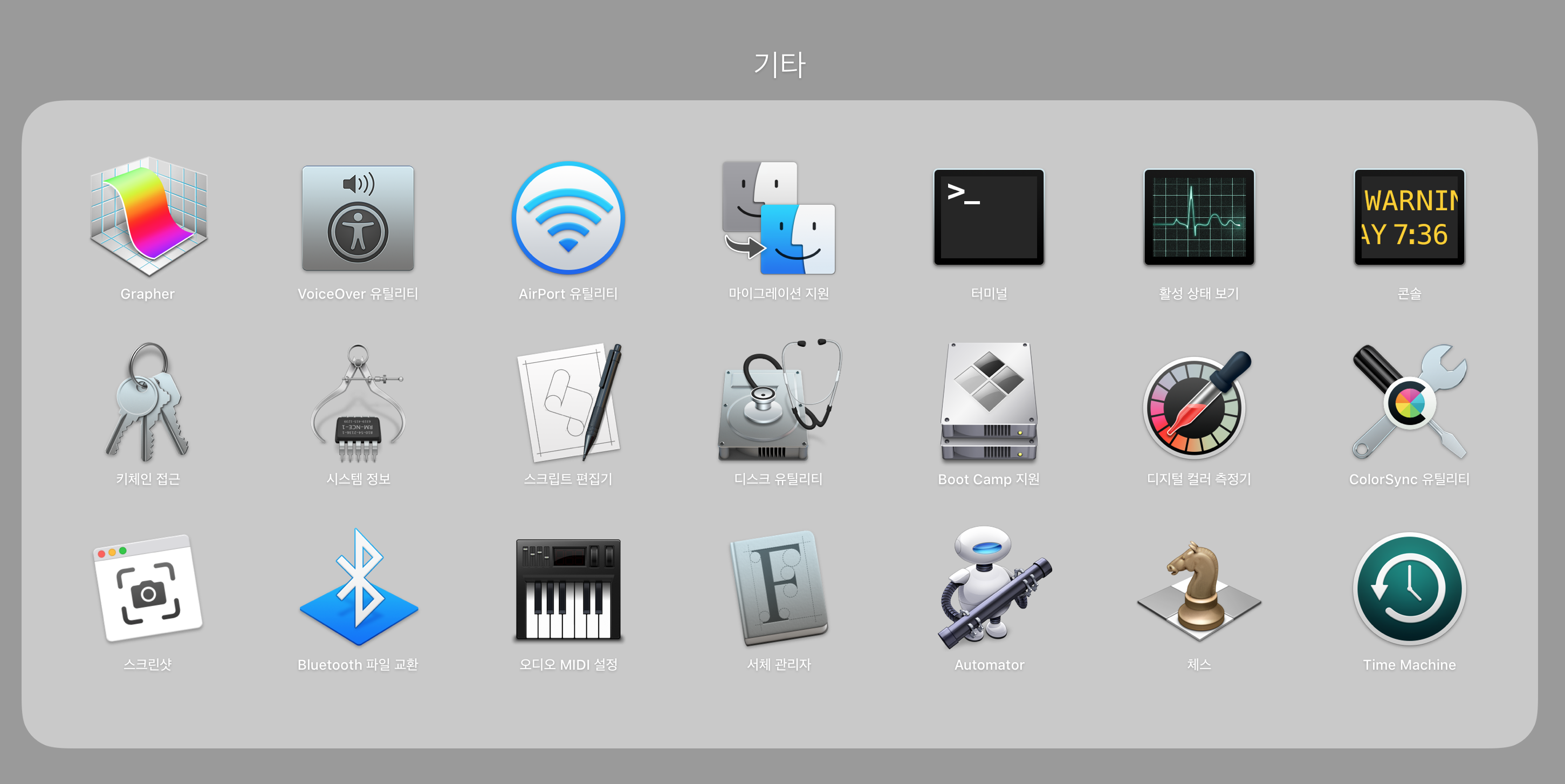 윈도우에서는 위처럼 편하게 차단 사이트를 우회할 수가 있는데요, 맥에서는 다소 귀찮은 방식을 사용해야 합니다.(저는 윈도우와 맥을 모두 사용 중에 있습니다.) 사실 귀찮다기 보다는 일일이 명령어를 입력해줘야 하는 불편이 있죠. 우선 명령어 입력을 위해서 터미널을 실행시키도록 하겠습니다. 터미널이 생소한 분들도 많으실텐데요, 윈도우의 cmd 라고 생각하시면 편하십니다. 기타 항목에 터미널이라고 있으니 찾아서 실행하도록 하겠습니다.