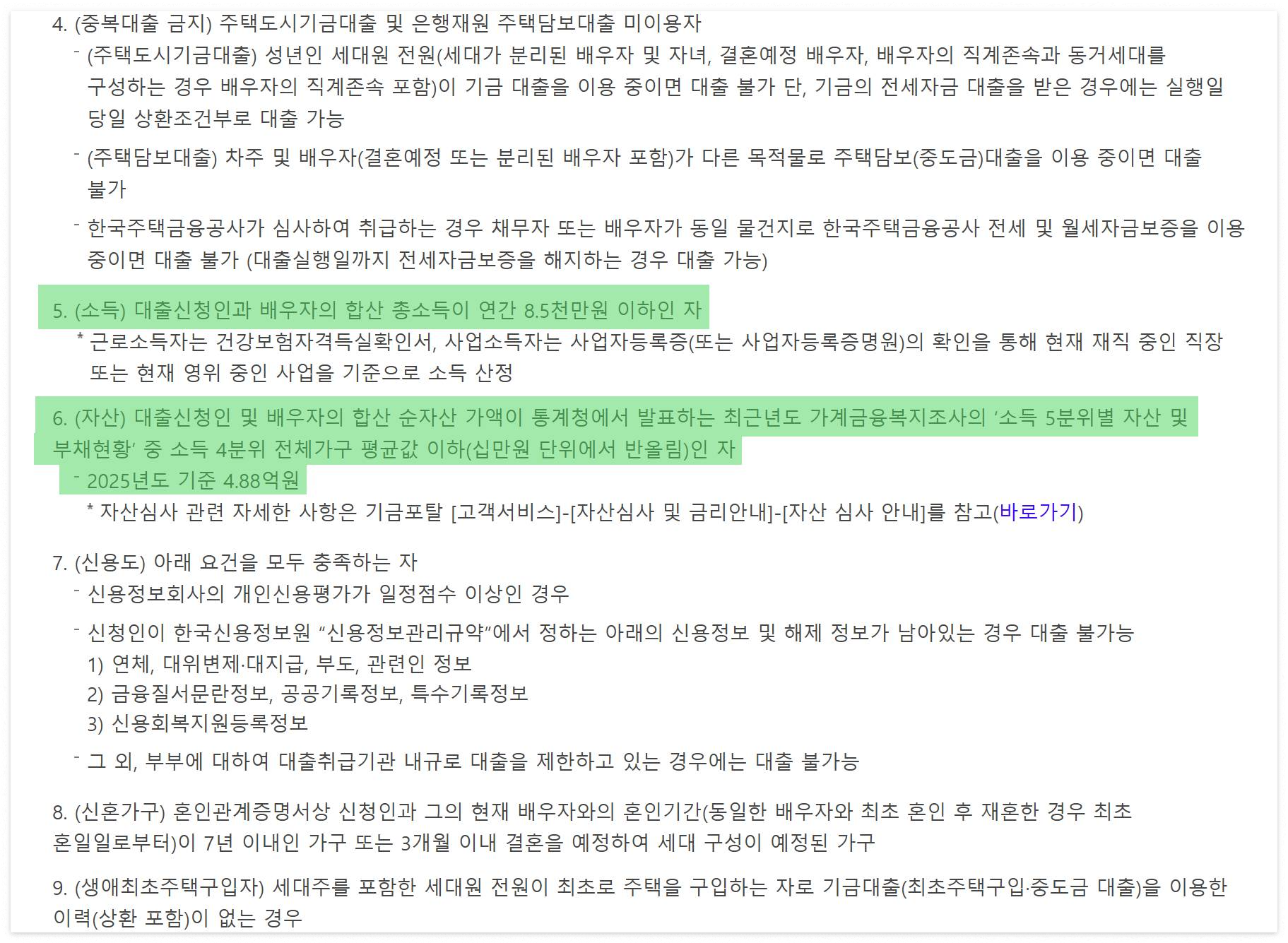 - 부부 합산 연소득 8,500만 원 이하 (세전 기준, 상여금·수당 포함)