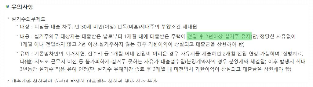 대출 후 1개월 내 전입, 최소 2년 이상 거주해야 하며 이를 어기면 대출금을 회수당할 수 있습니다.